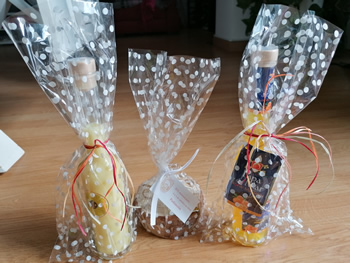 Yo les estaba esperando en la golondrina que nos llevaría a ver el Castillo, la parte marítima y la bahía de Peñíscola. Ya estamos a bordo y suena la bocina del barco y nos anuncia que sueltan amarras y zarpamos. Me habían dicho que en el barco había una locución que te iba explicando mientras duraba el viaje. Pero no ha sido así, ha sido mucho mejor. El capitán nos iba explicando todo lo que veíamos, el bufador, la escalera secreta del Papa Luna, etc. y el oficial de cubierta nos ha ido explicando temas de navegación y de una manera súper amena e instructiva. Ha sido un paseo muy agradable, el buen tiempo nos ha acompañado en todo momento. Tras este paseo tocaba un refrigerio que este año he retrasado la hora para evitar que alguno se mareara en el barco. Llegamos y nos estaban esperando y claro está, copamos el bar entero. Y estando allí hablando con unos y con otros, de repente mis ojos tienen lo que yo creo una visión. ¿Este chico lo conozco, pero de qué? Y desaparece de mi vista, parece que se ha parado a hablar con los socios o se ha ido. Y es entonces cuando lo veo entrar y dirigirse hacia mí. Me froto los ojos y digo. - Pero Eric, ¿te haces tu aquí? Era Eric Haumont, un socio y amigo de Francia que no tenia previsto venir al aniversario, pero al final no pudo aguantarse y tomo un avión y allí se presentó. La alegría fue enorme, me hizo muchísima ilusión verlo. Llame al restaurante y le pedí a Fernando, el dueño, que pusiera un cubierto más. Increíble que Eric haya cogido un avión desde Paris para comer con nosotros. Eric eres increíble y adorable. Llegamos al restaurante y nos sentamos para iniciar de nuevo conversaciones, risas e incluso alguna lágrima de emoción. Cuando contamos historias de nuestros padres y abuelos, a todos o casi todos se nos escapa alguna lágrima y se lo contagiamos a los amigos. Como regalo este año les dimos una botella de licor de mandarina y otra de crema de limón para las chicas, todos de la bahía de Peñíscola y para todos unos posavasos que llevaban grabado un dibujo de amistad.